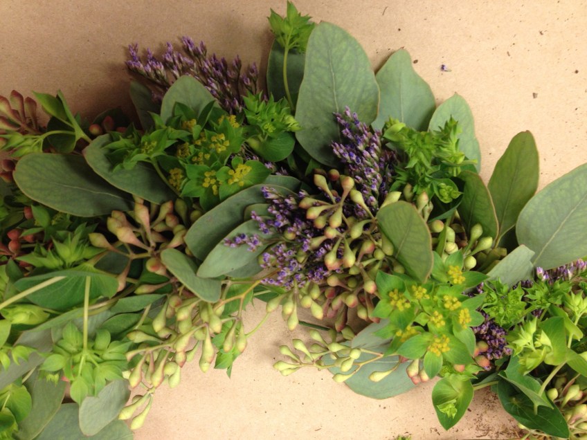 IMG_1912 Published March 20, 2012 at 3264 × 2448 in day five – basic floral design I at longwood small garland of purple limonium, seeded eucalyptus, and bupleurum made by Jenny in class 39.877500 -75.719667