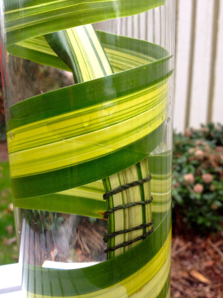 IMG_2274 Published March 25, 2012 at 2448 × 3264 in day six – basic floral design I at longwood – last day of basic! bind wire holds the anthurium stem inside the phormium leaf 39.909000 -75.348833