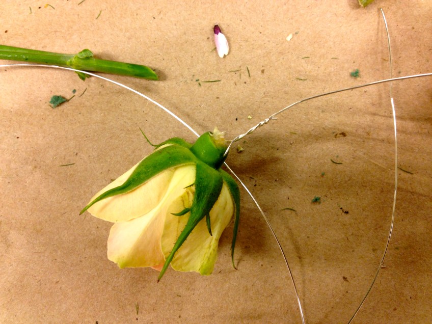 string wire through rose head’s calyx Published April 11, 2012 at 3264 × 2448 in day three part two – advanced floral design I at longwood string wire through rose head’s calyx