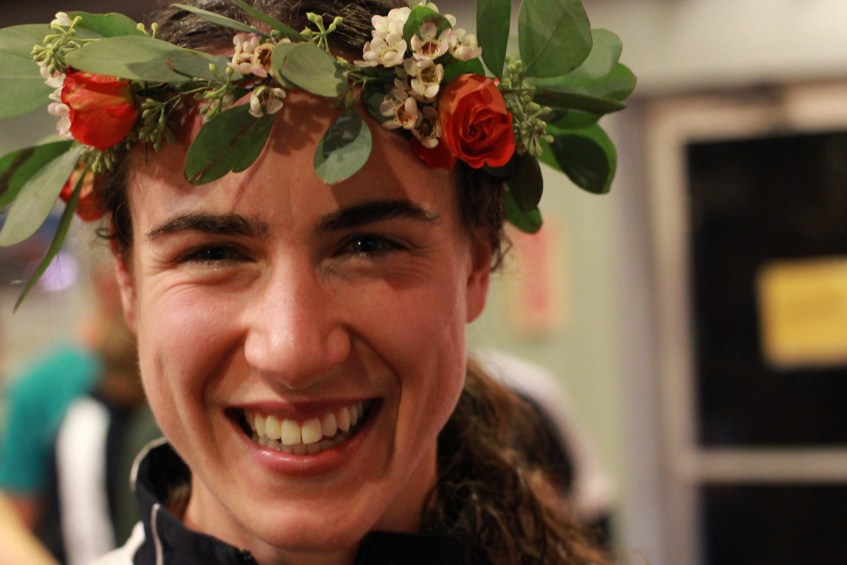 Ali on Day 1 Published November 12, 2012 at 5184 × 3456 in be a good sport – creating floral awards Here is superstar Ali Crocker again, wearing a wreath bedecked wtih seeded eucalyptus, spray roses, and waxflower. She was the winner of the North American F-21 winner of the Middle Distance at NAOC.