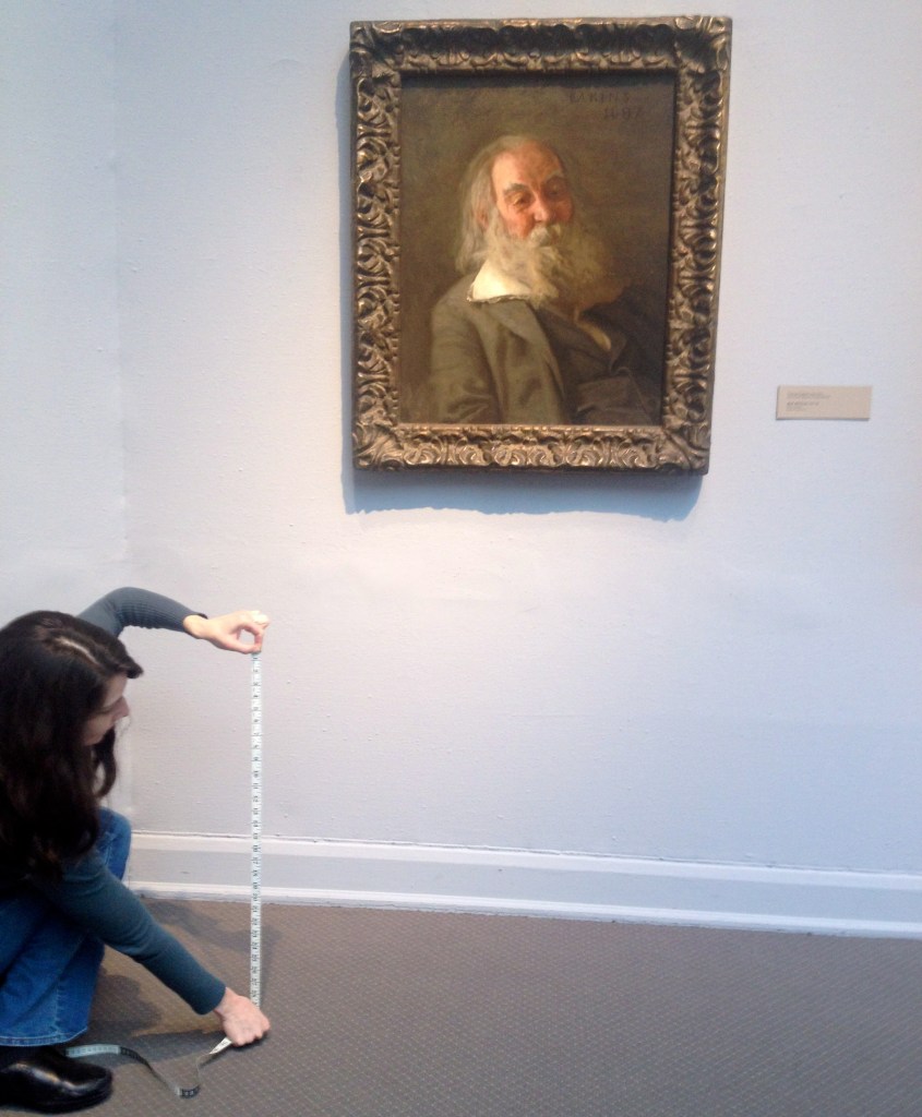 Juliet Measuring Published April 18, 2014 at 2448 × 2968 in Art in Bloom My lovely sister-in-law Juliet and I took a trip to PAFA to get an idea of how large a space I’d have to fill and see Walt close up.