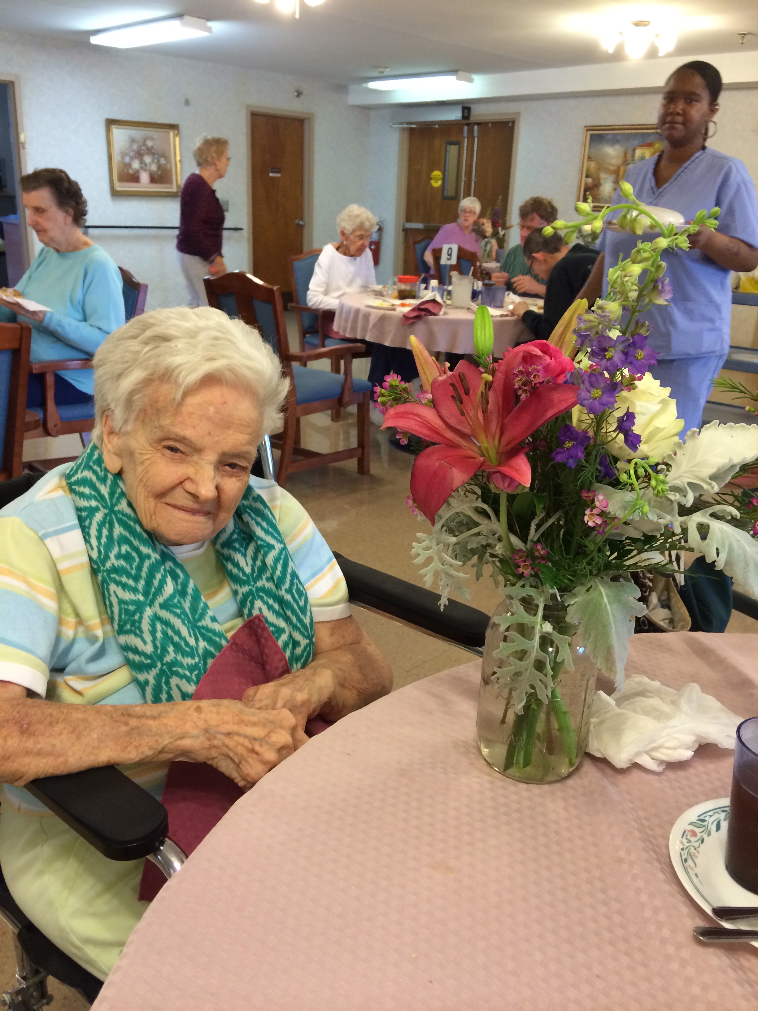 The last woman I handed an arrangement to was Margie.  She is 102 years old.  When I asked her the secret to her longevity, she replied, “It’s all in God’s hands.”