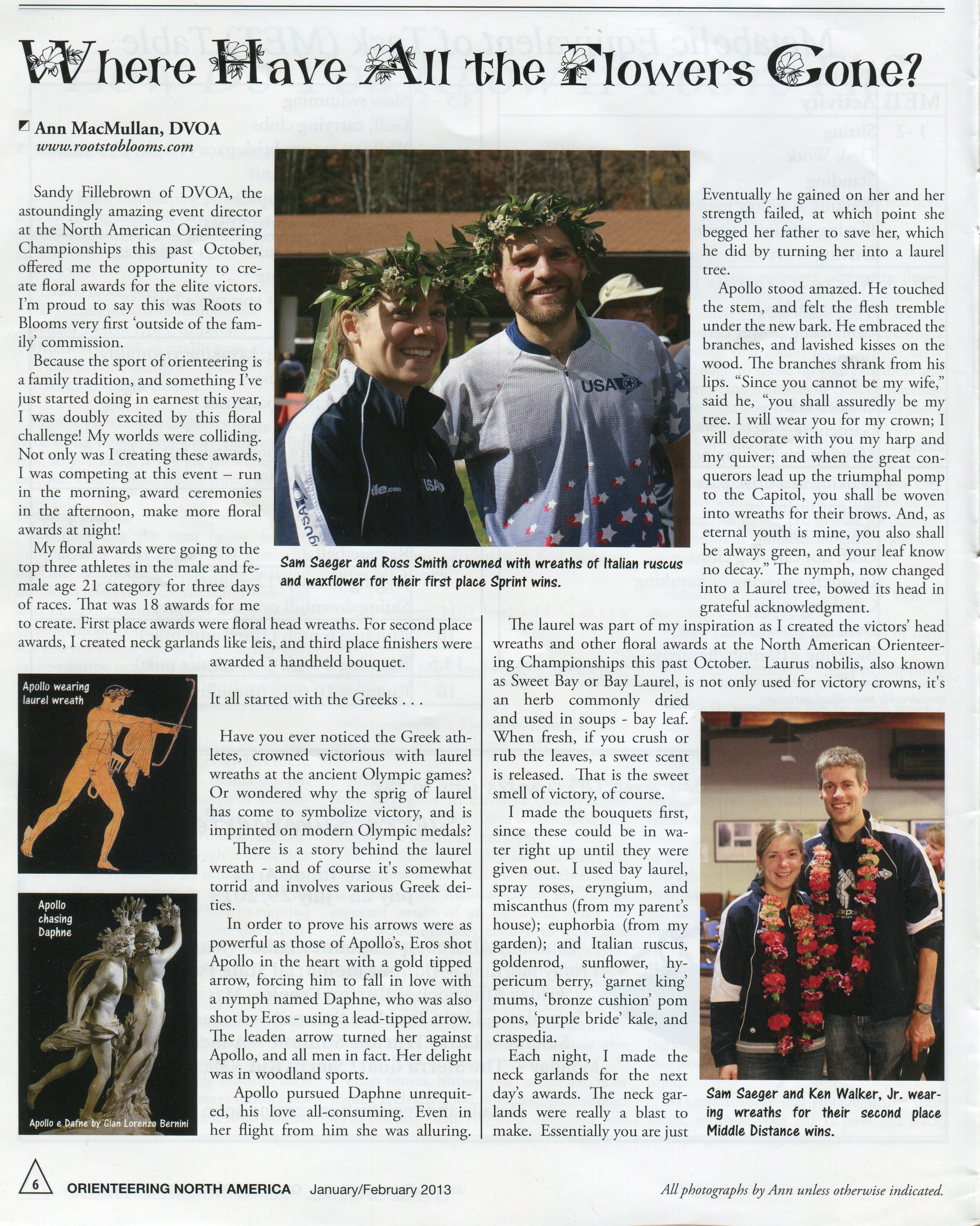 My blog post on Creating Floral Awards at the North American Orienteering Championships was adapted and published in the magazine Orienteering North America Jan/Feb 2013 issue.