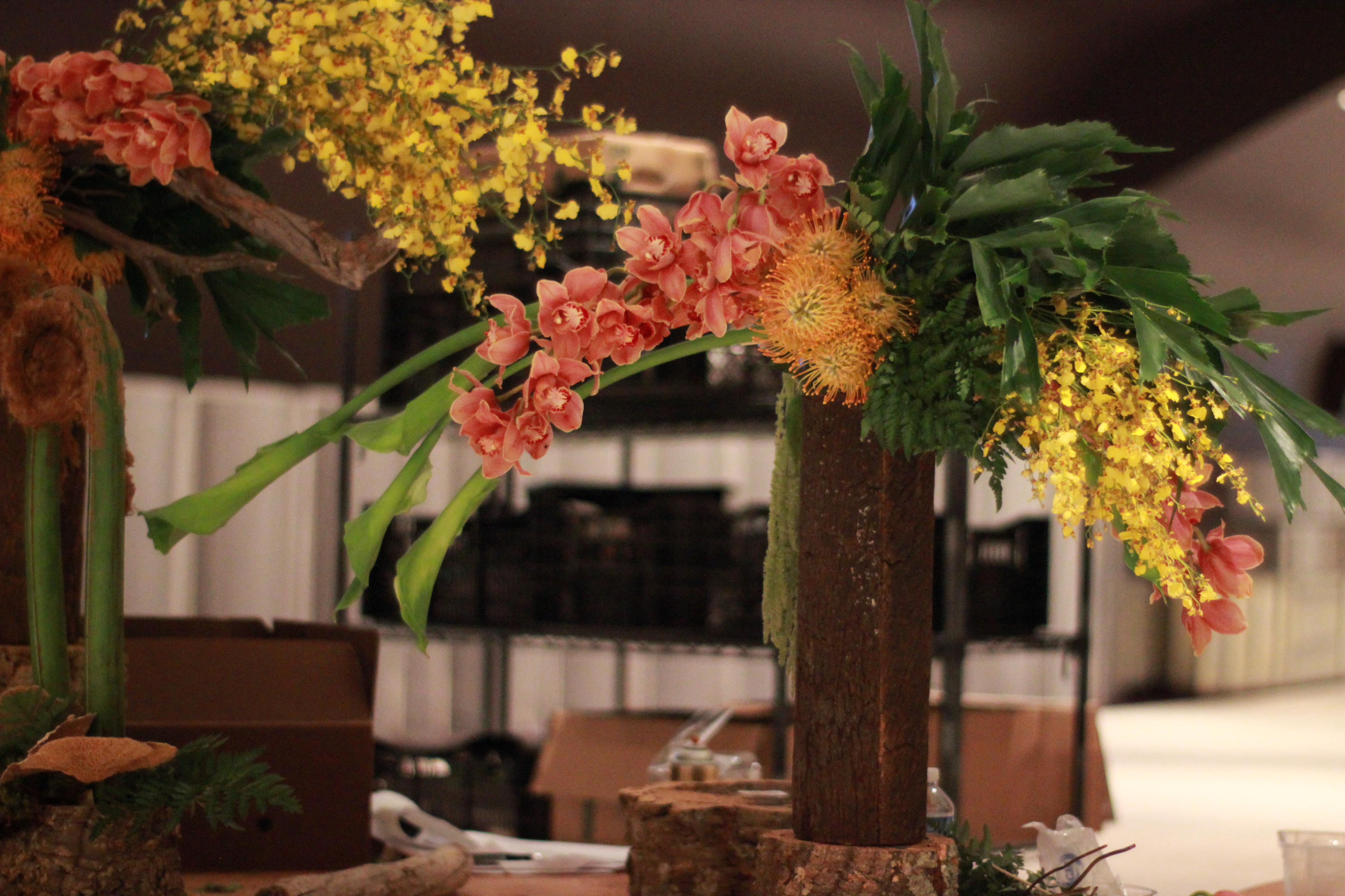 In addition to all the voluminous chapeaus, the Ladies Day event features floral centerpieces donated by area floral designers such as VF Flowers, Beautiful Blooms, Robertsons, Cottage Flowers, Fleur, and…Roots to Blooms! (That’s me.) Our centerpieces would be displayed in the preferred seating tent with a luncheon included, and then moved to the blue room where the box holders have dinner.