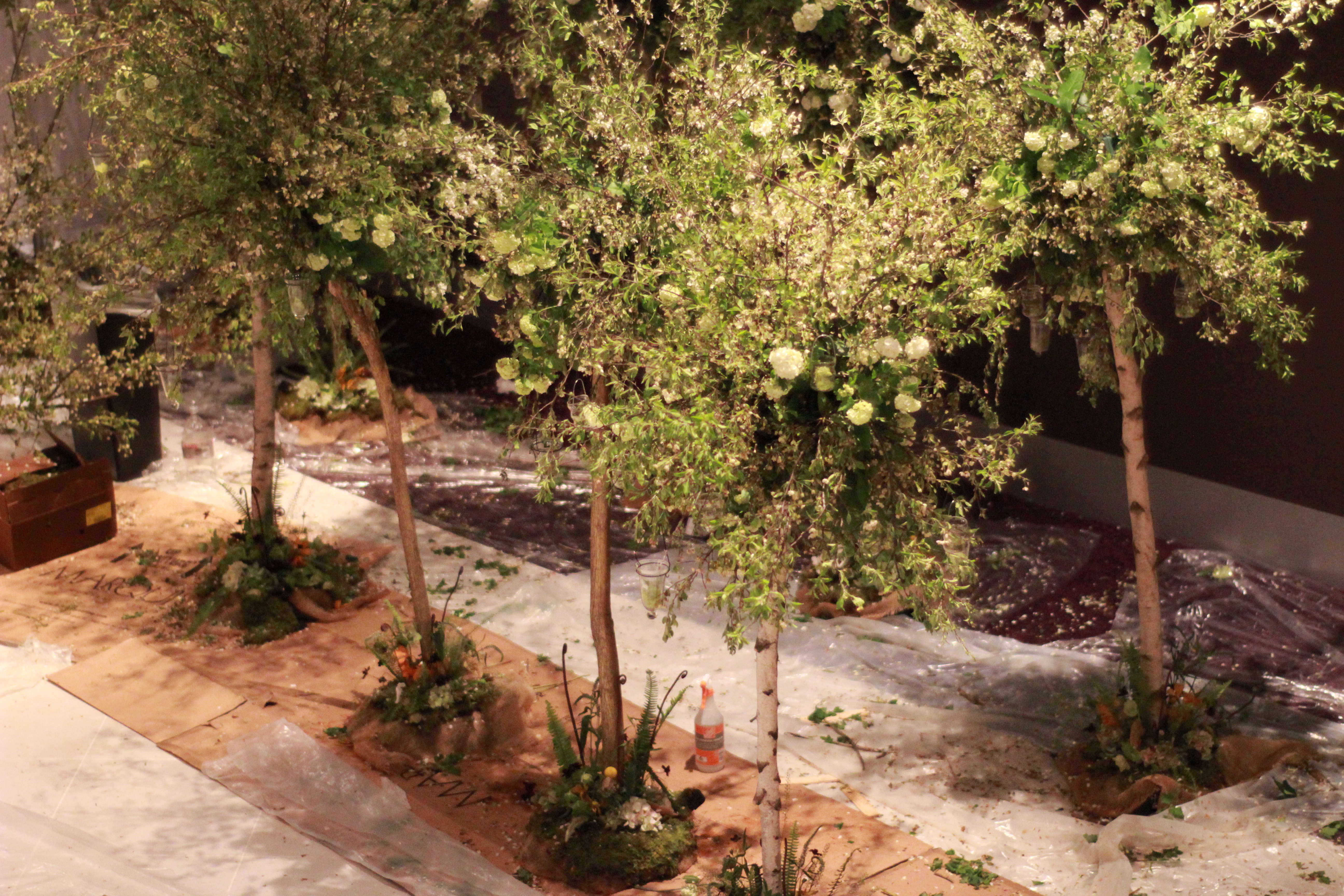 First, I lined the hat box (bought from Amazon) with plastic, added a thicker plastic liner, and yes, I had to use floral foam for this. There was no way around it. After doweling together my foam, which rose three to four inches higher than the lip of the box, I added the base foliage of dusty miller and variegated pittosporum… and then I just kept adding peonies. It was a delicious experience to work with so many peonies (the white peony edged with pinky/red ‘Festiva Maxima’ has the most wonderful fragrance!) I added filler such as nigella, blue cornflower, Queen Anne’s lace, some spray rose and a few fronds of maidenhair fern. I tucked a few black feathers in for accent, as well as some lacey hat netting and some black bows and a few pearl thingamabobs.