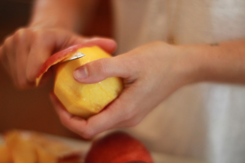 fiona cutting peaches