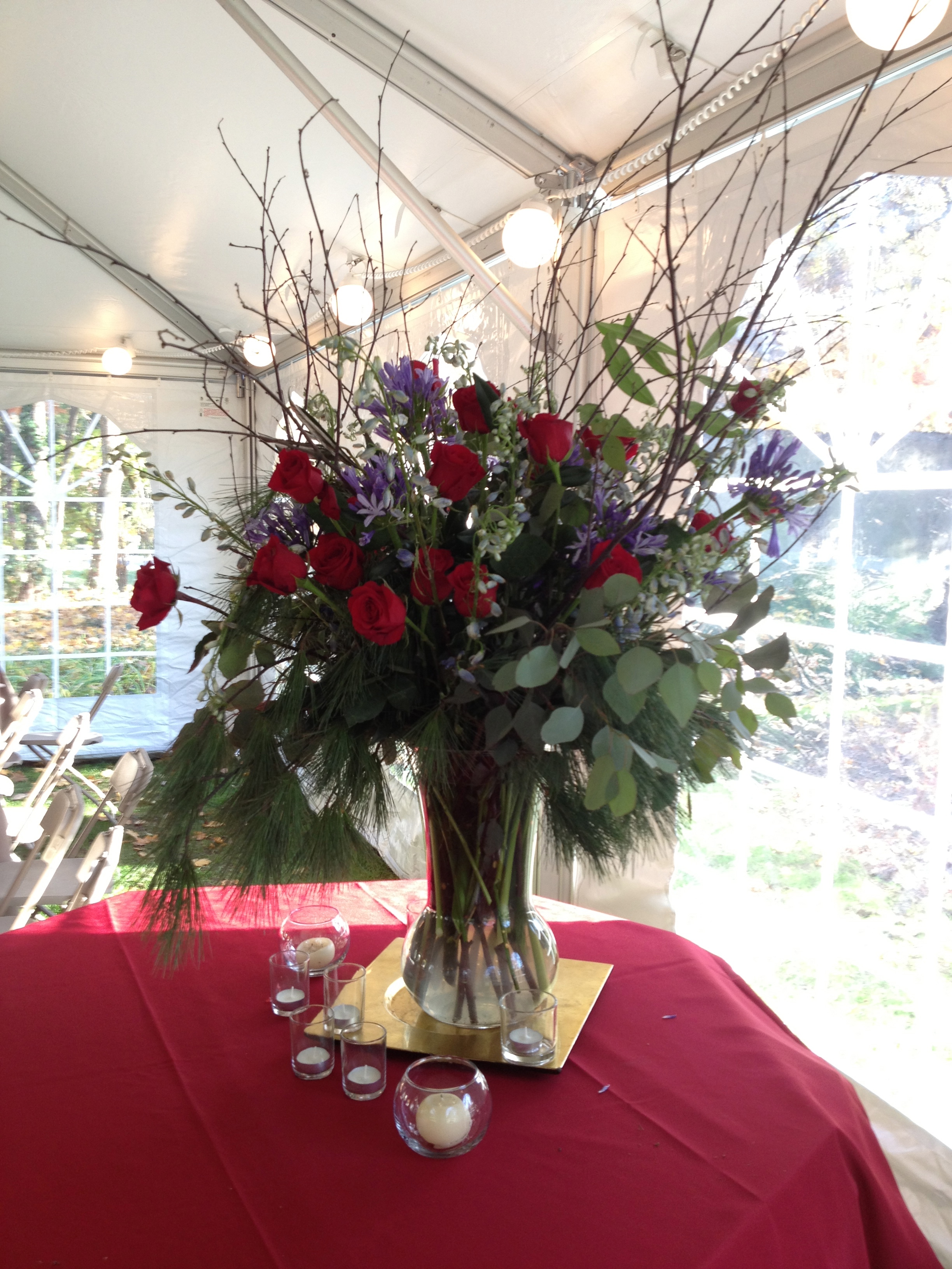 holiday bar arrangement w/ roses, agapanthus, delphinium, eucalyptus, pine and birch branches Published November 27, 2012 at 2448 × 3264 in Floral Portfolio Like Loading...